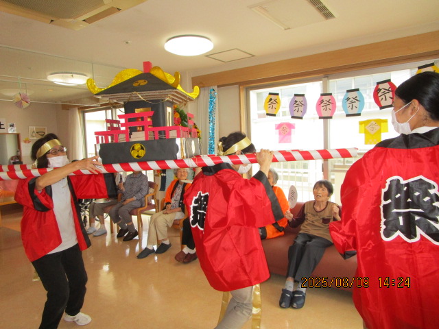 職員手作りのお神輿を担いで夏祭りのスタートです🏮