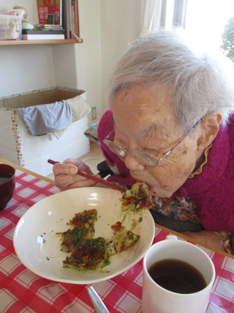 キャベツの千切りから焼き上がりまでお手伝いして下さり、
