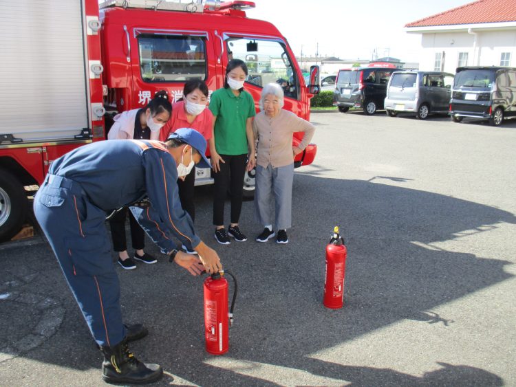 🚒消防避難訓練🚒 2025.11.08 マーヤの家「東野」では、大阪狭山市消防署の隊員のみなさまのご指導の下、 消防避難訓練をが実施されました🧑🏻🚒 施設内での火事を想定し、ご利用者様と一緒に避難場所まで速やかに移動!! 水消火器にて消化訓練を行いました🧯 ご利用者様も積極的に参加してくださり、 熱心に隊員の方のお話を聞いて下さっていました🙂